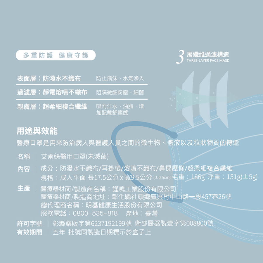 *任4盒399元*【艾爾絲】成人醫療平面口罩50入/盒-湖水藍(Light輕時尚 大地色系)