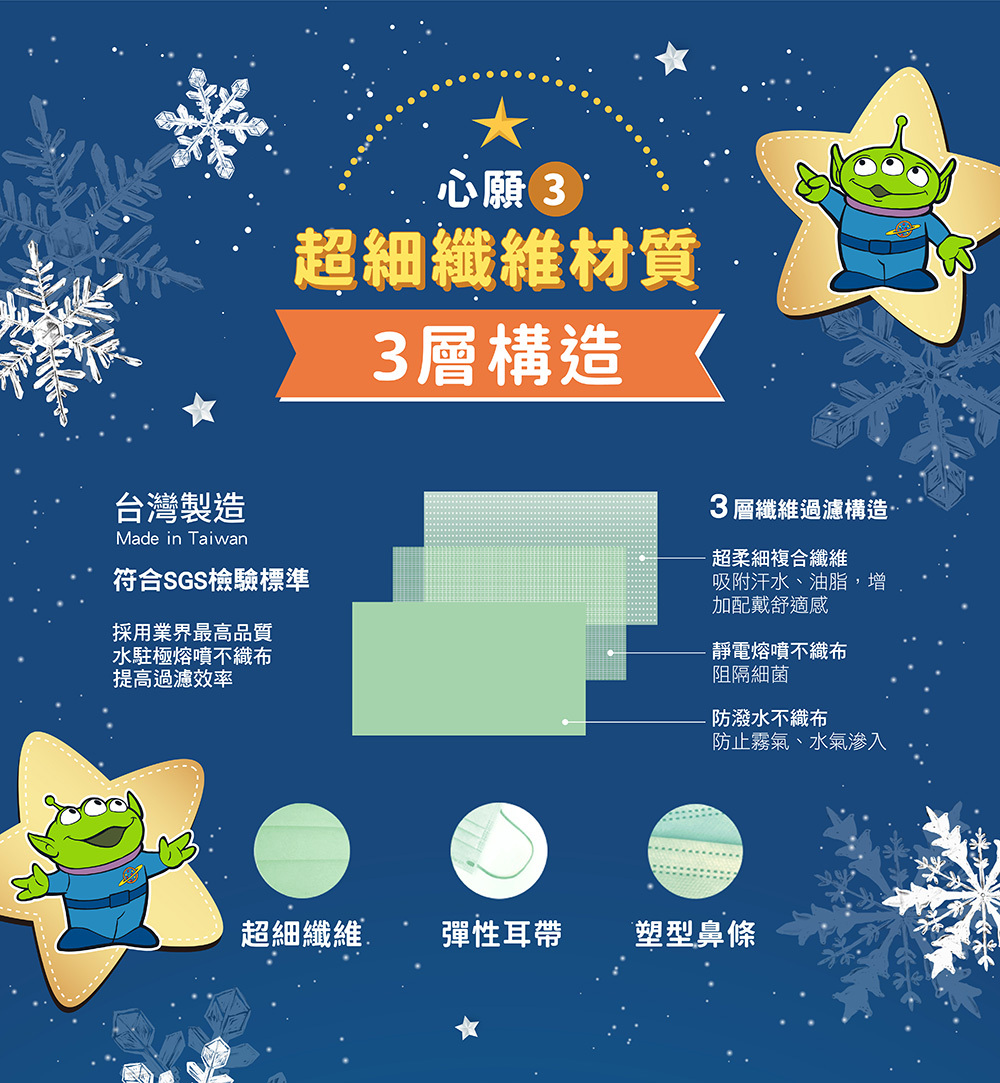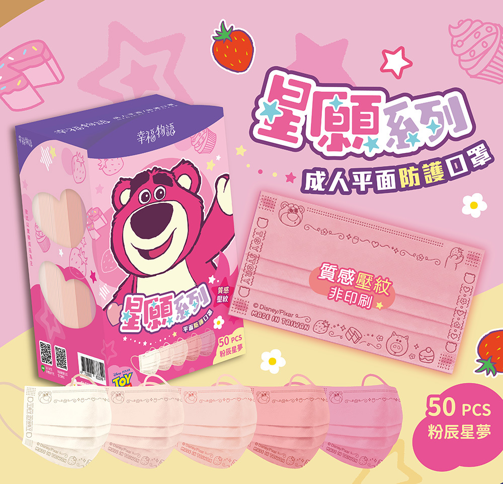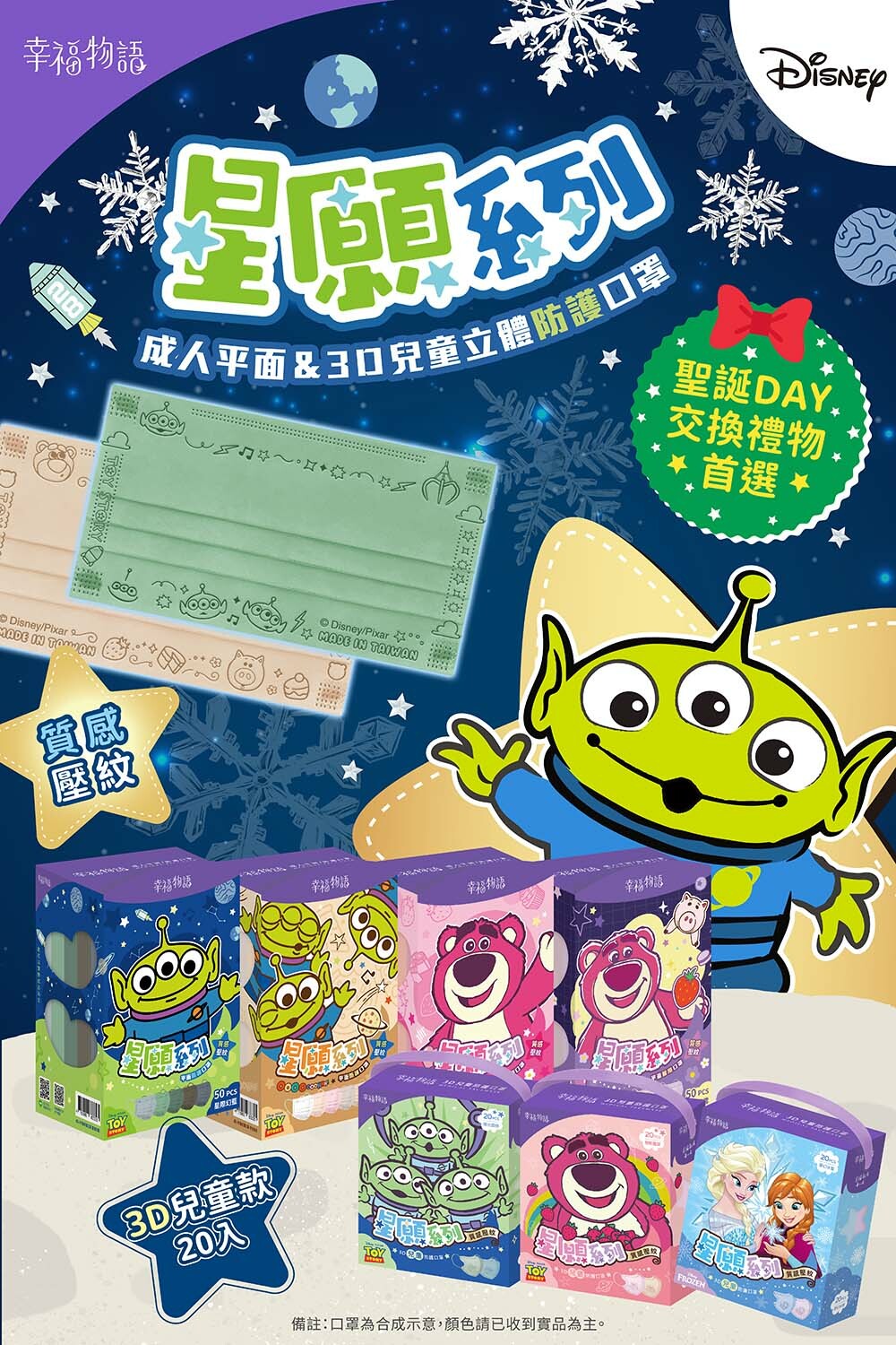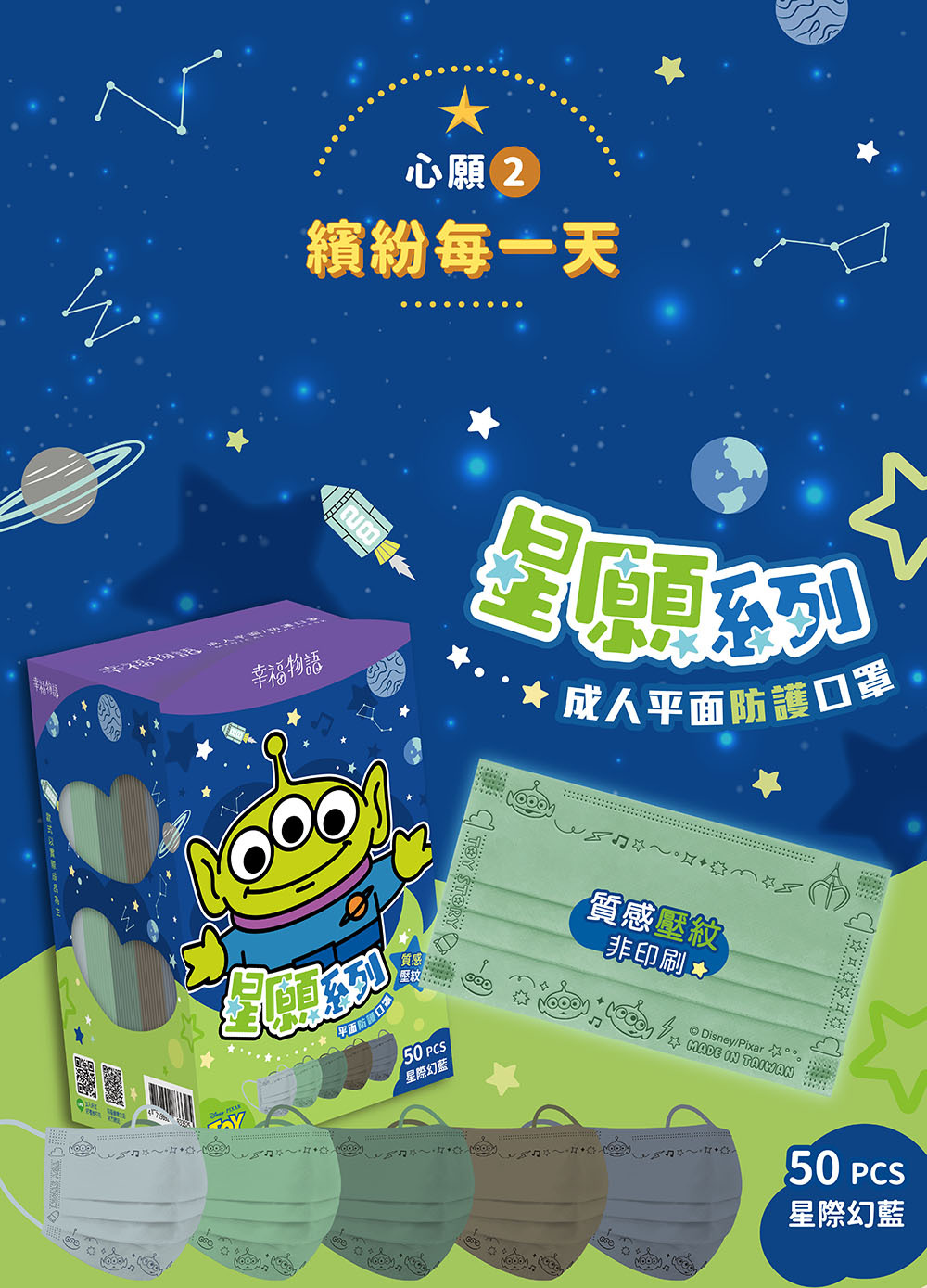 【幸福物語】三眼怪 成人平面口罩 50片/盒-星際幻藍 (皮克斯系列/一盒5色,每色10片)