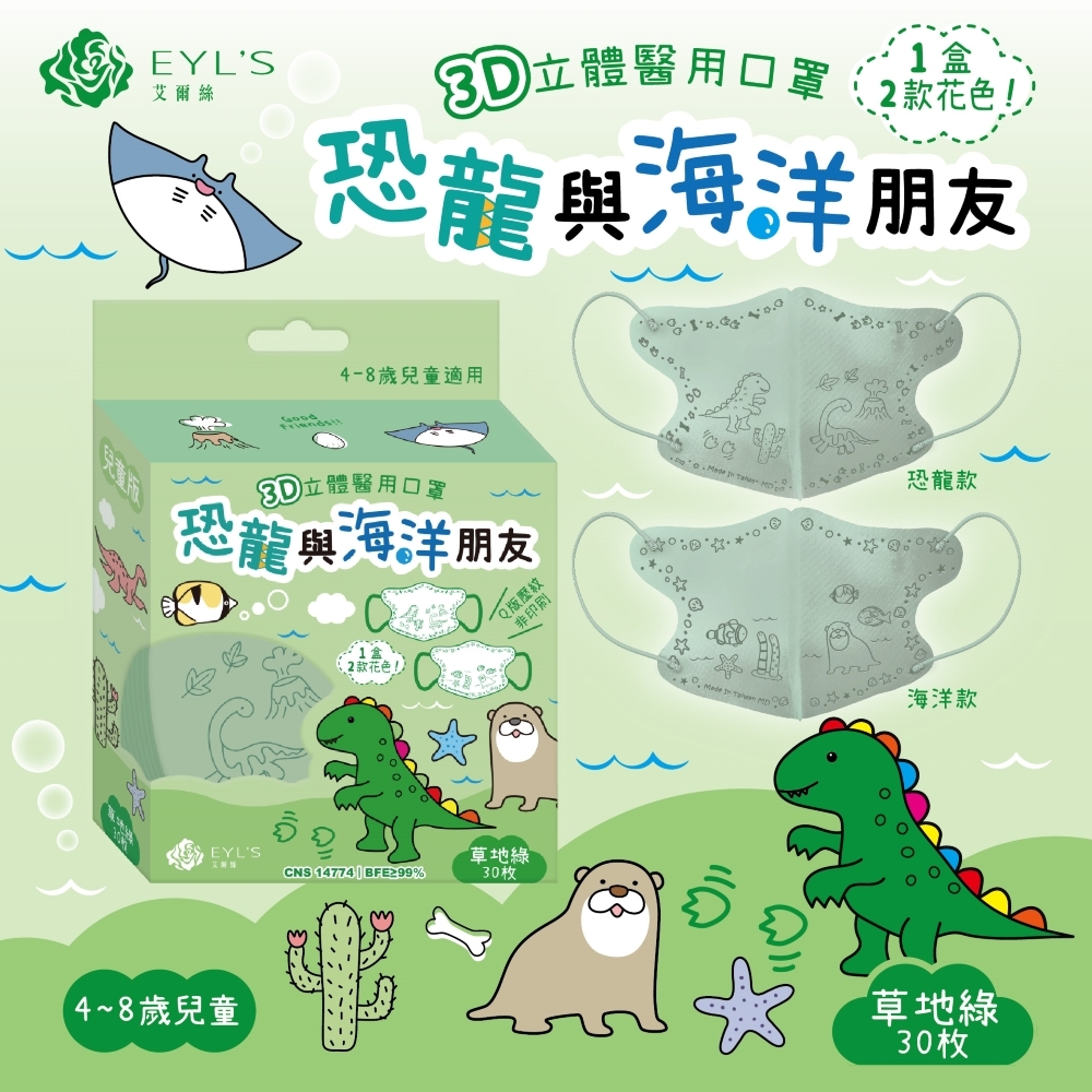 👶 讓你的孩子愛上戴口罩!我們的兒童3D立體口罩不僅舒適,還有超可愛的恐龍圖案。