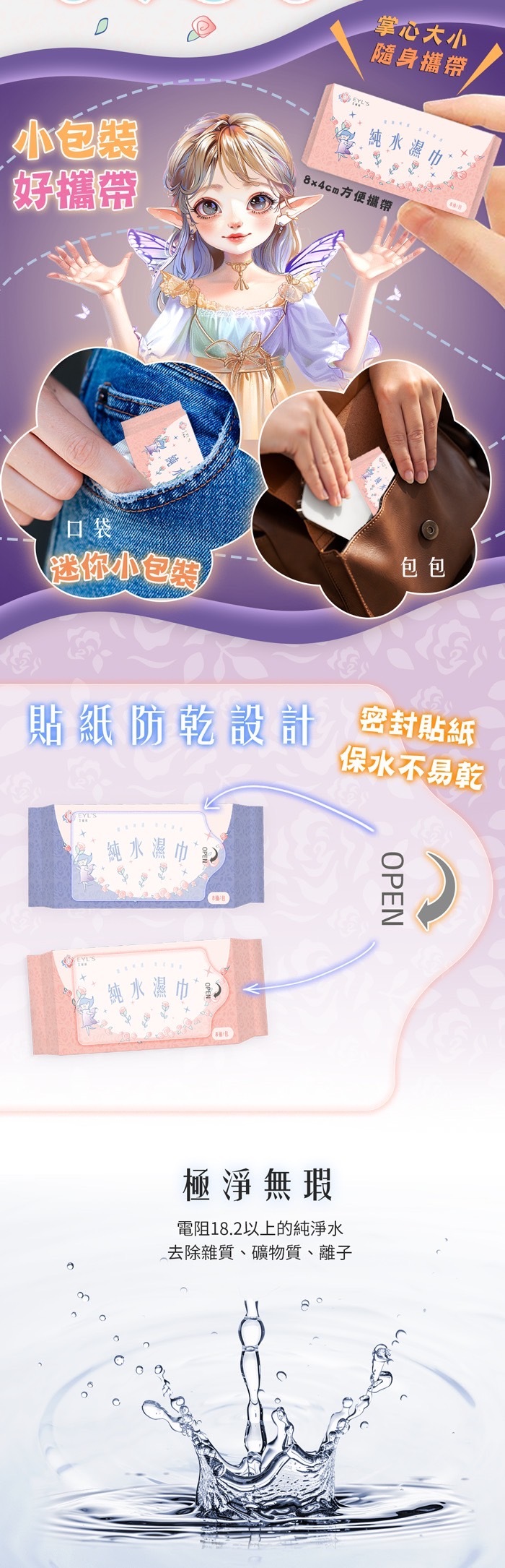 給妳最溫柔的呵護,從艾爾絲迷你純水溼巾開始!