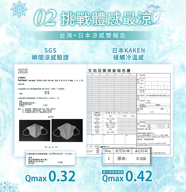 日本KAKEN接觸冷溫感最大熱吸收速度 Qmax 0.42