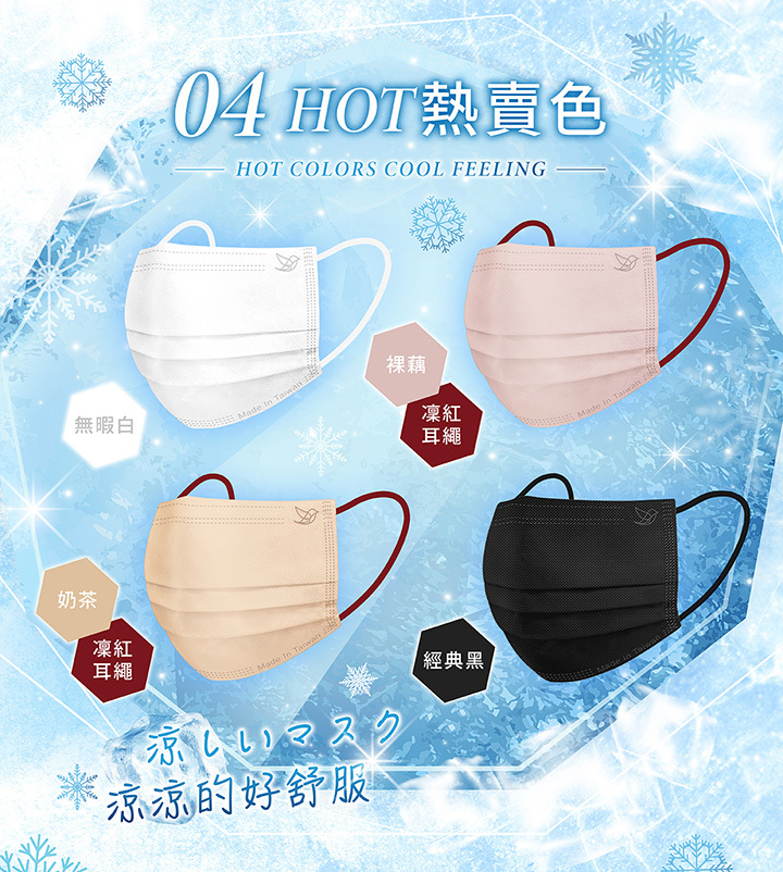 【幸福物語】極凍の平面醫療口罩20片/盒-裸藕+凜紅耳繩