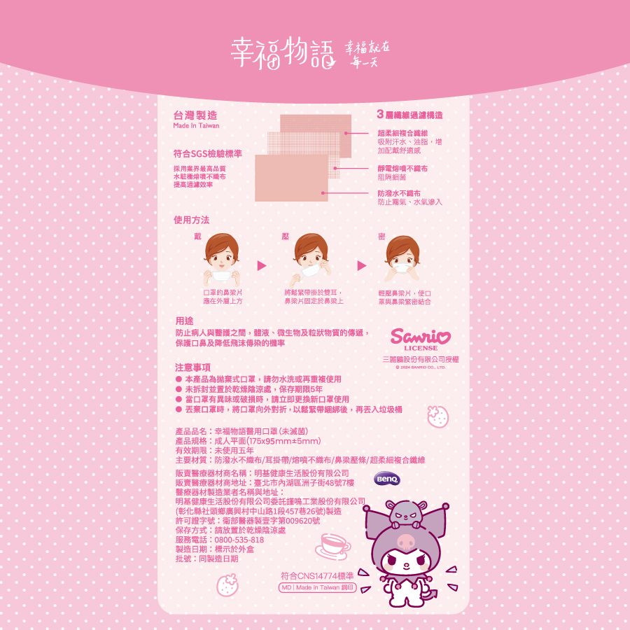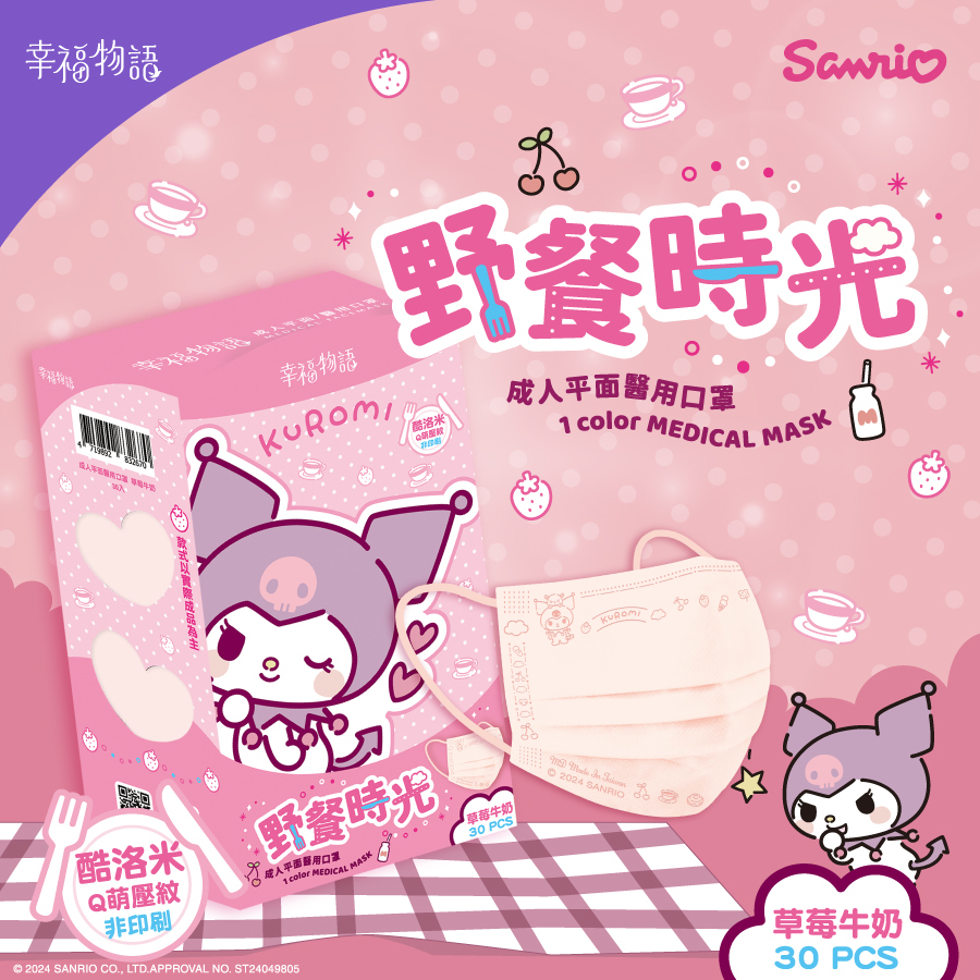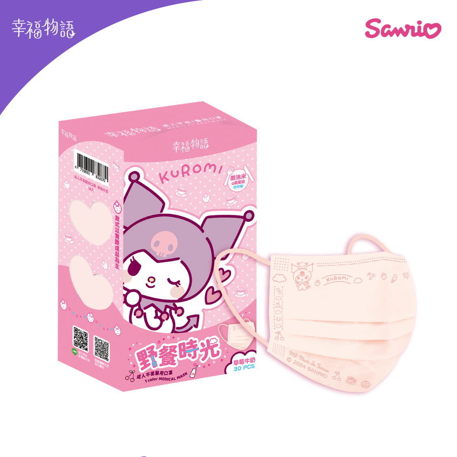 【幸福物語】酷洛米野餐時光 成人醫療口罩30片/盒(草莓牛奶)