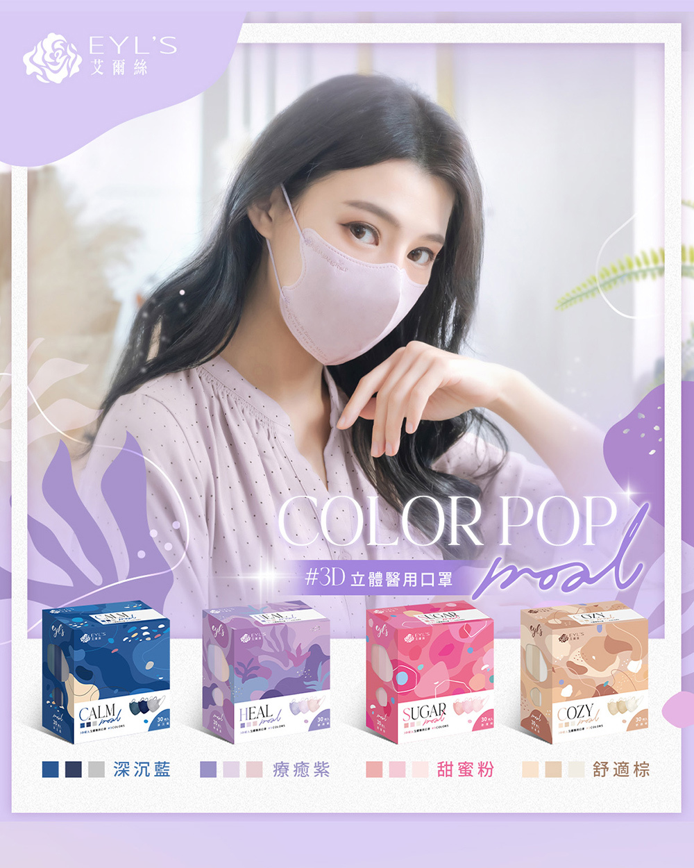 【艾爾絲】3D立體三色漸層醫療口罩 30片/盒-甜蜜粉