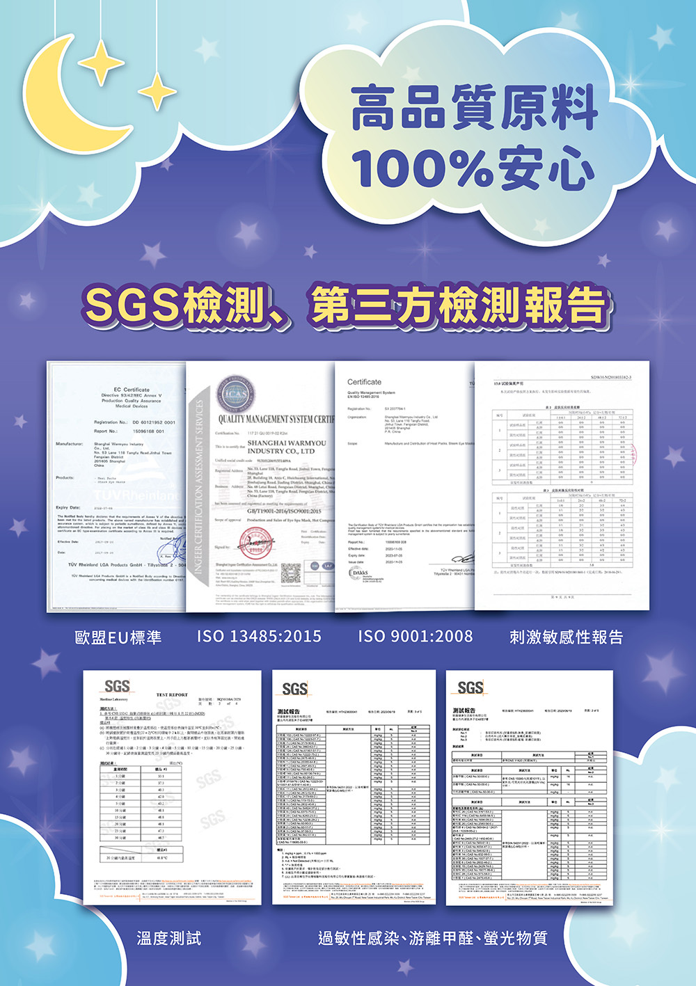 *通過溫度測試 、重金屬、過敏性染料、游離甲醛螢光物質